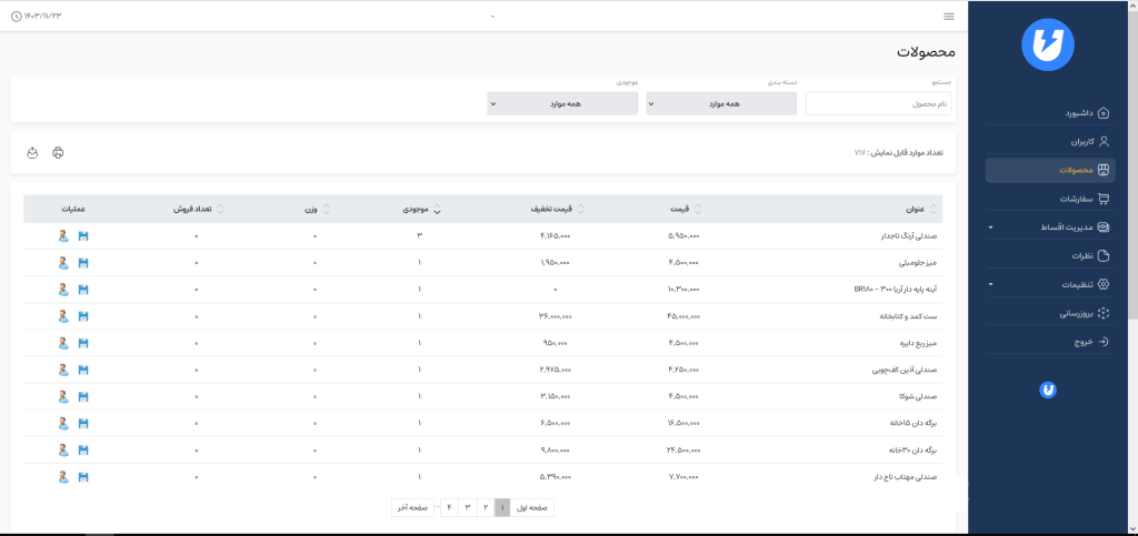 • امکان فیلتر و نمایش محصولات با موجودی صفر؛